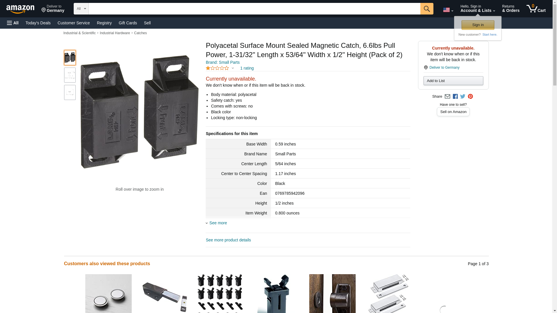 Polyacetal Surface Mount Sealed Magnetic Catch, 6.6lbs Pull Power, 1-31/32" Length x 53/64" Width x 1/2" Height (Pack of 2)