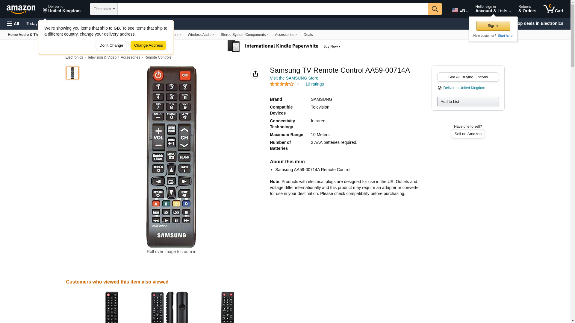 SAMSUNG PN64E533D2FXZA UN39EH5003F AA59-00817A Remote Control