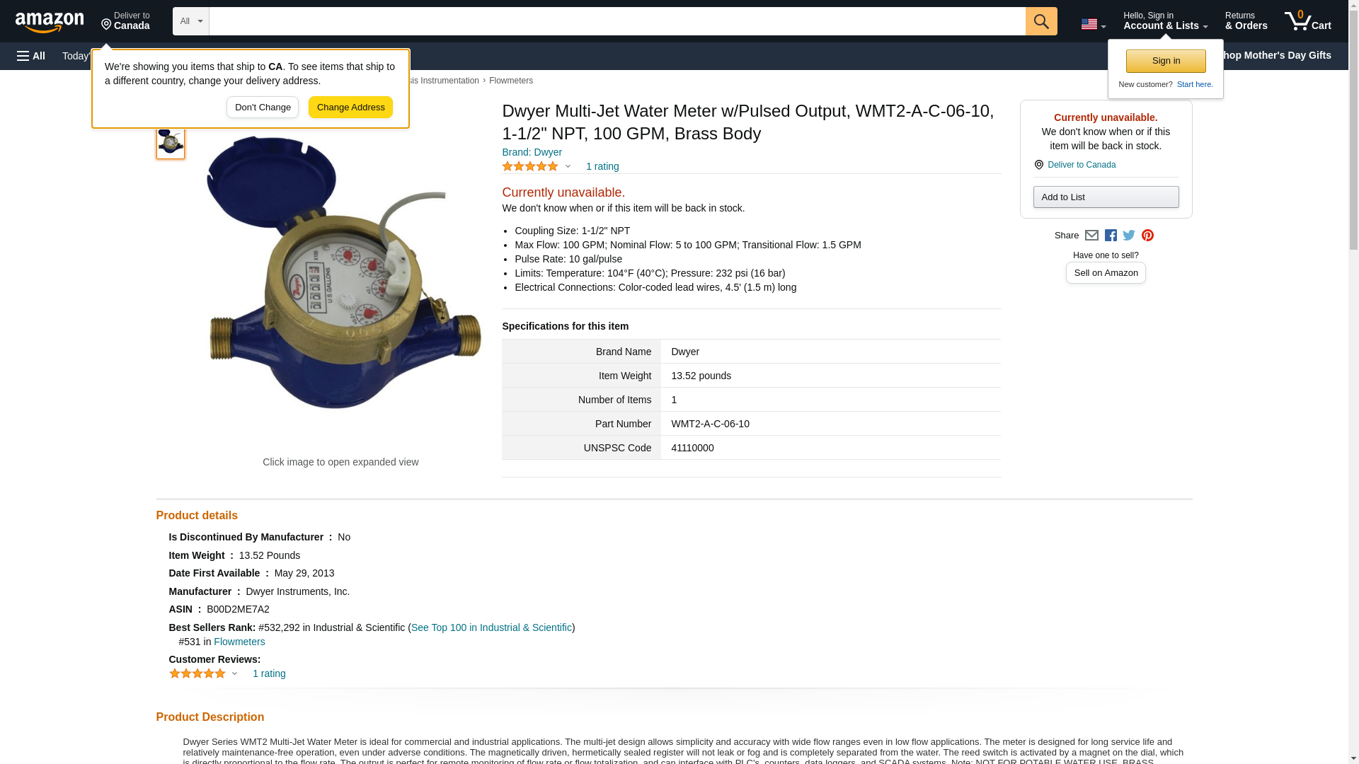 Dwyer Multi Jet Water Meter, 232Psi, 100Gpm - WMT2-A-C-06-10