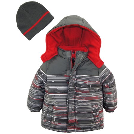 Water and wind resistant. Durable fabric, warm padding and cool puffer design will top his look and keep him warm on a cold day. Roomy fit for layering over sweaters and hoodies. Colors and zip front make it easy to mix and match. Weather resistant, and perfect for cold days. Zip front closure with two side entry pockets. Polar fleece lined body and hood. Velcro storm closure on hood <br />SKU: 18-wrz-16-8