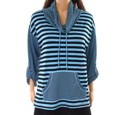 Ruby Rd. NEW Black Blue Women Medium PM Petite Striped Cowl Neck Sweater