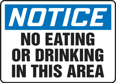 Order MGNF803XV by Accuform Sign "No Eating or Drinking in This Area" - US Mega Store