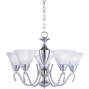 Newport II Collection - 25" 5-Light Single-Tier Chandelier in Satin Nickel with Marble Glass by Maxim Lighting - 12063MRSN | MyKnobs