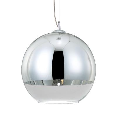 Eurofase 20454-012 Chromos Hand Blown Glass Globe Pendant Light, 1-Light 60 Watt, 12" H x 12" Dia, Chrome