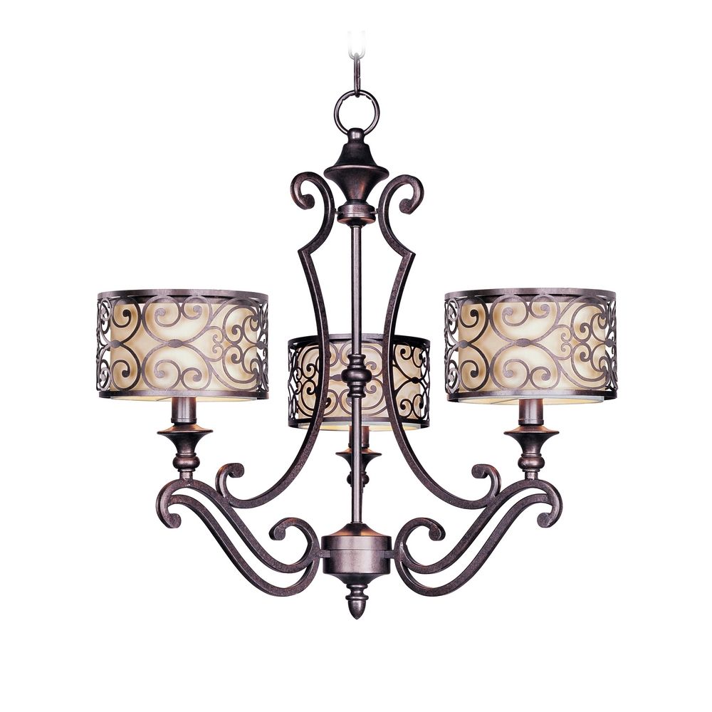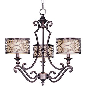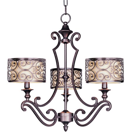Maxim 21153WHUB Mondrian Forged-Iron Frame with Wheat Fabric Chandelier, 3-Light 180 Total Watts, 24" H x 25" W, Umber Bronze