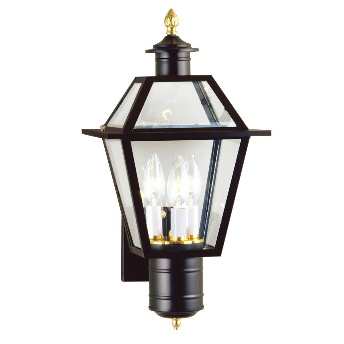 This 3 light Outdoor Wall from the Lexington collection by Norwell will enhance your home with a perfect mix of form and function. The features include a Black finish applied by experts. Product Features Include: Brand: Norwell Lighting, Collection: Lexington, SKU: 2233-BL-CL, UPC: 00810005101578, Category: Outdoor Wall Light, Finish: Black, Glass: Clear, Material: Brass/Glass, Length: 18.00 in., Width: 9.00 in., Height: 18.00 in., Extension/Depth: 9.75 in., Backplate/Canopy Width: 4.50 in., Backplate/Canopy Length: 4.50 in., Backplate/Canopy Thickness: 0.75 in., Install Position: Up, Weight: 8.00 lb., Warranty: 2 Years, Bulbs Included: No, Bulb Category: Incandescent, Primary Bulb(s): 3 x 60.00 watts E12 Candelabra, Outdoor Rating: Suitable for Wet Locations, Safety Rating: Wet