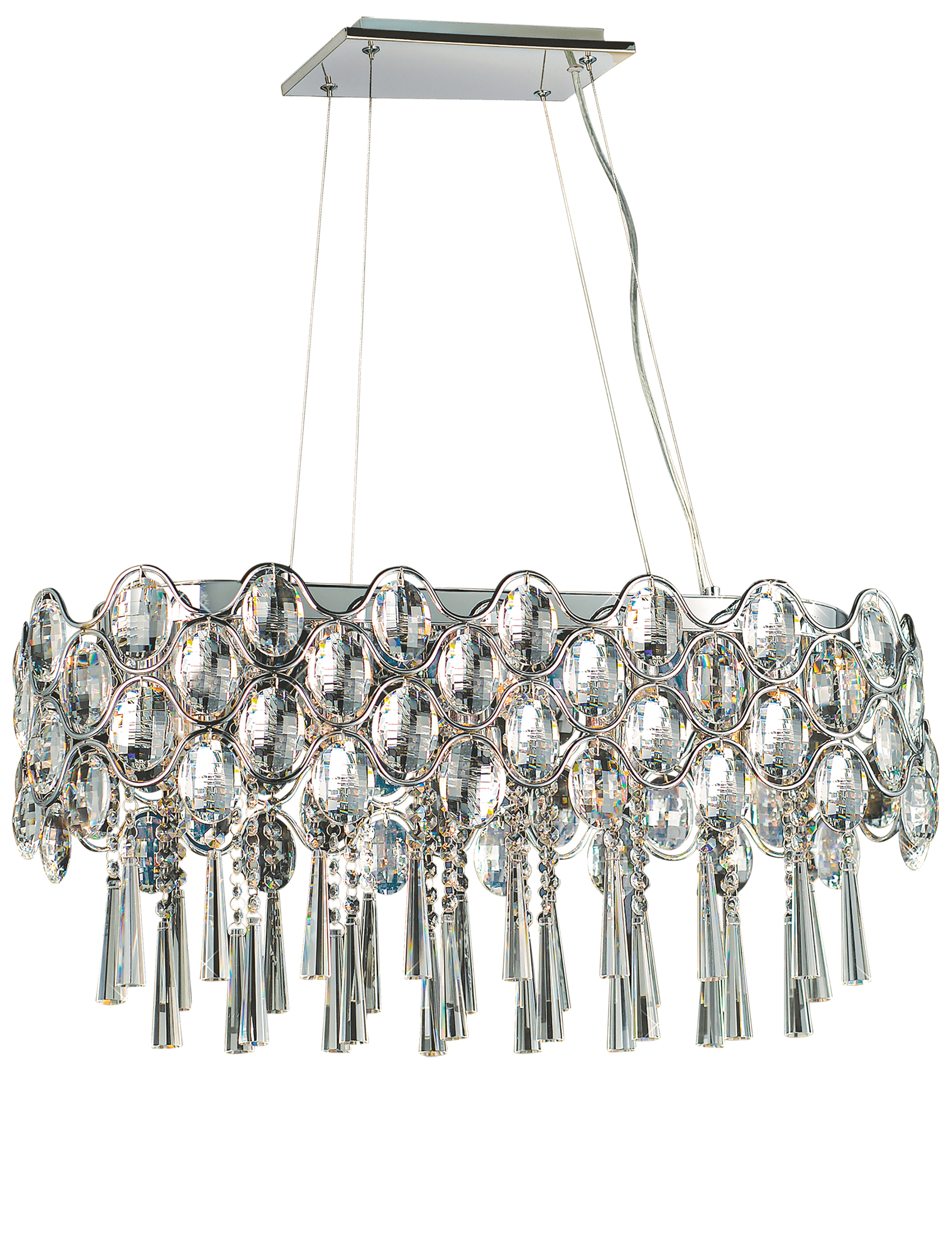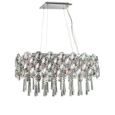 - JEWEL ISLAND CHANDELIER DIMENSIONS: 11" High (137.8" Max Adjustable Height) x 11.5" Wide x 28" Long, Weight: 29.7 lbs.
