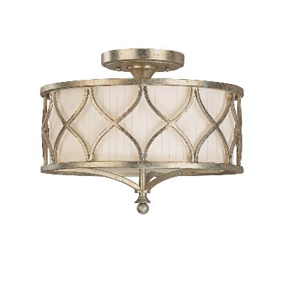 Capital Lighting 4003WG-487 Fifth Avenue Art Deco Box-Pleated Drum Semi Flush Ceiling Light Fixture, 3-Light 180 Total Watts, 12" H x 15" W, Winter Gold