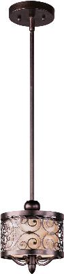 Maxim 91150WHUB Mondrian Forged-Iron Frame with Wheat Fabric Drum Mini Pendant Ceiling Light, 1-Light 75 Watt, 13" H x 8" W, Umber Bronze