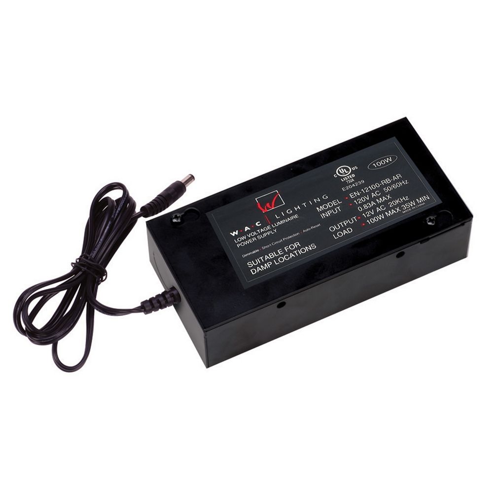 This transformer is a low voltage class 2 remote electronic transformer specifically designed for use with color changing LED tape lights. Features: Built-in auto reset technology Overload circuit protection features Soft start feature - delayed start feature extends lamp life by delaying the abrupt inrush of current to the lamp, for use with a controller 5 year WAC product warranty Specifications: Transformer Input: 120V Transformer Output: 24V Minimum Load: 1.5 watt Maximum Load: 60 watts Frequency: 20khz Length: 6.88" Width: 3.32" Height: 1.75" UL Listed: Yes