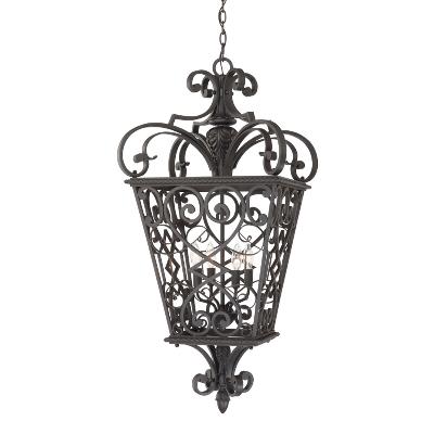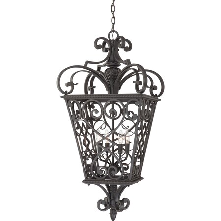 Quoizel FQ1920MK01 Fort Quinn Wrought Iron Outdoor Foyer Pendant Lighting, 4-Light, 240 Watts, Marcado Black (41" H x 19" W)