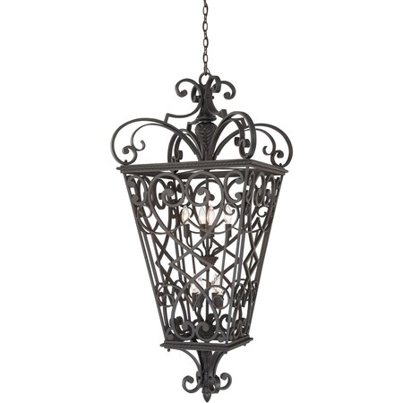 This Eight Light Outdoor Foyer Hall Fixture has a Black Finish and is part of the French Quarter Collection.