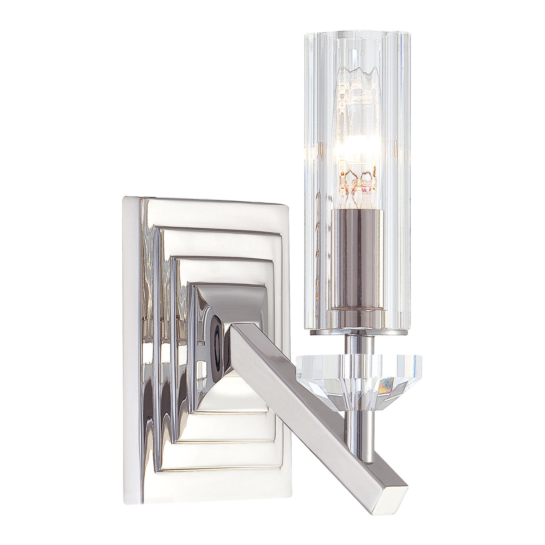 N2651-613 Features: -Wall Sconce.-1 Light.-Eidolon Krystal glass shade.-ETL listed for damp location. Color/Finish: -Polished nickel finish. Specifications: -Accommodates (1) 60W candelabra bulb (not included). Dimensions: -10.25'' H x 4.5'' W x 6.5'' D, 3.31 lbs. Collection: -Fusano collection.