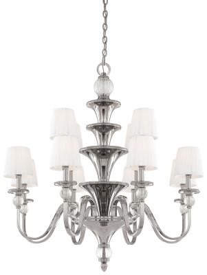 Minka Metropolitan N6611-613 Aise - Twelve Light Chandelier, Polished Nickel Finish with White Cloth Shade