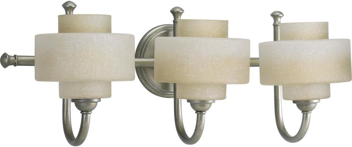 Grey 3-Lt. Bath with Toasted Linen Glass Shades P2887-134WB by Progress Lighting
