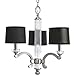 Three-light chandelier with the spirit and elegance of an early Hollywood ballroom combines clear crystal accents with a Classic Silver finish. Includes both black and white shades.
