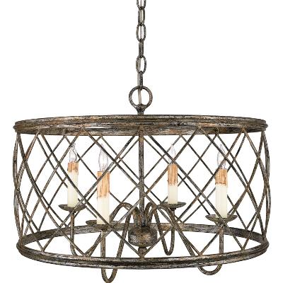 Quoizel RDY2821CS Dury Cage Pendant Lighting, 4-Light, 240 Watts, Century Silver Leaf (15" H x 22" W)