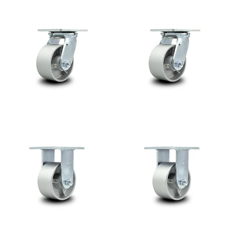 Semi Steel Cast Iron Swivel Caster w/Main. Free Bearings Set of 4 w/4" x 2" Silver Wheels - Includes 2 Swivel & 2 Rigid - 4000 lbs Total Capacity - Service Caster Brand