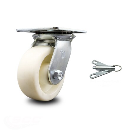 Heavy Duty Large Top Plate Nylon Swivel Caster w/Main. Free Bearings and 5" x 2" White Wheel & Bolt on Swivel Lock - 900 lbs Capacity/Caster - Service Caster Brand