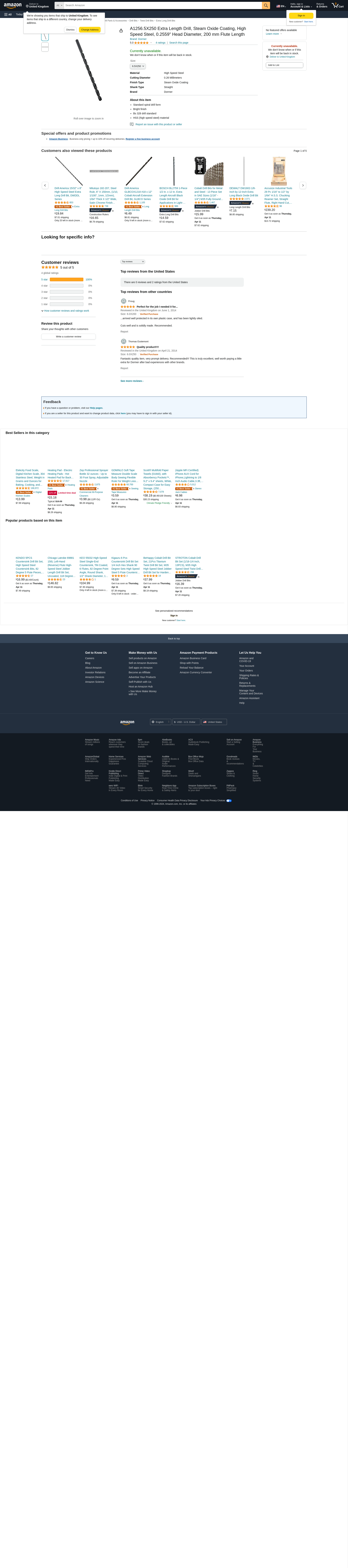 Dormer A1256.5X250 Extra Length Drill, Steam Oxide Coating, High Speed Steel, 0.2559" Head Diameter, 200 mm Flute Length