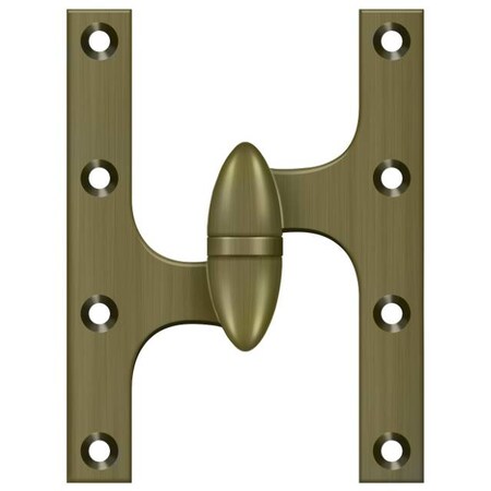 Deltana OK6045B5-L 6 Inch x 4-1/2 Inch Solid Brass Olive Knuckle Hinge - Left Handed Antique Brass