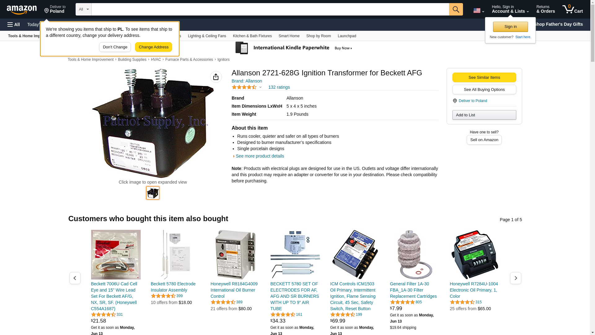 Allanson 2721-628G Ignition Transformer for Beckett AFG