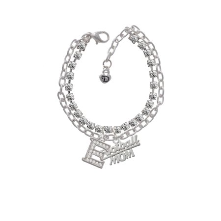 Silver Tone "Football Mom" -E- Double Strand Crystal Cup Chain Madison Charm Bracelet with Beaded Crystal Initial. Silver Tone, hand enameled charms. Charm size is approx. 0.62 x 1.03 x 0.06 inches (HxWxD) including loop. Double Strand Crystal Madison Charm Bracelet is 6.5 Inches with a 1 Inch Extender. Bracelet is made from 4mm link chain and 4mm Clear Crystal Cupchain with Lobster Claw Clasp. Beaded Crystal Initial is approx. 0.72 x 0.48 x 0.10 inches (HxWxD) including loop. Available in A-Z. Please contact us with your order number if you would like to customize the initial. Featured item is an exclusive Delight & Co. design. We are a family owned company for over 35 years in the U.S.A. PLEASE NOTE: Our products are lead safe, but are not intended for children 14 years and younger.