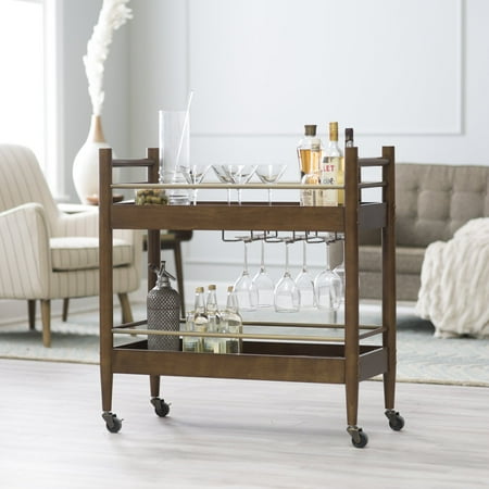 . Brass-finished metal gives this bar cart understated, modern style, and it coordinates with the Carter MCM collection. A toast to at-the-ready convenience and tasteful design is in order. <p></p>