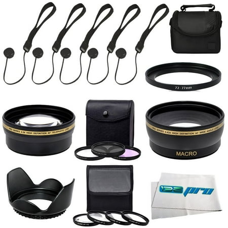 <ul><li>This Kit Included:</li><li>72mm Wide Angle Lens + 72mm Telephoto Lens + 72mm-77mm Metal Step Down Ring</li><li>77mm UV-CPL-FLD Filters w/Case + 77mm +1+2+4+10 Close-Up Macro Lenses</li></ul>