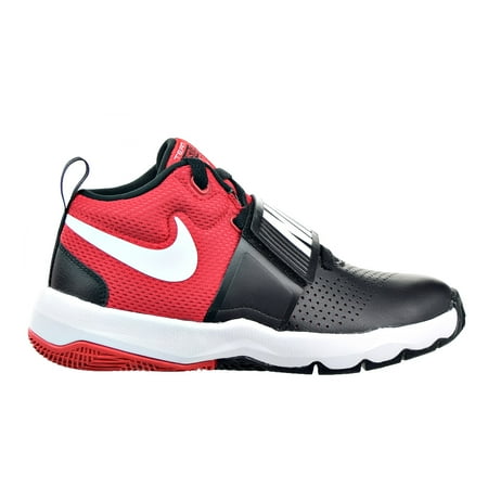 The Nike Team Hustle D 8 Big Kids' Basketball Shoe features perforated panels and deep flex grooves to help keep you cool and moving naturally on the court. <br /> <ul> <li>Leather and mesh for breathable support</li> <li>Midfoot strap provides a locked-in fit</li> <li>Full-length Foam for lightweight cushioning</li> <li>Thin rubber outsole for durable traction</li> <li>Flex grooves allow natural movement</li> </ul>