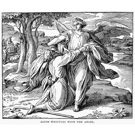 Jacob Wrestling Angel Nwood Engraving 19Th Century Poster Print by Granger Collection