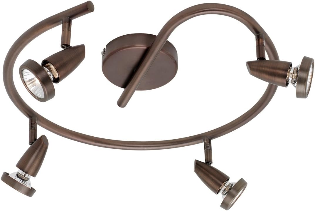 52222-BRZ Finish: Bronze Pictured in bronze Features: -Four light cluster spot.-CETL listed for dry location. Color/Finish: -Bronze finish.-Brushed steel finish. Specifications: -120 Volts.-Accommodates (4) 50W MR16 halogen GU-10 base bulb. Dimensions: -Overall dimensions: 6'' H x 18'' Diameter. Collection: -Mirage collection.