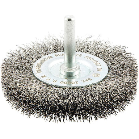 Item:Wire Wheel Brush; Item - Wire Wheel Brushes:Wire Wheel Brush; Bristle Type:Crimped Wire; Brush Dia.:3 in; Mounting Type:Shank; Arbor Hole Size:No Arbor; Abrasive Shank Size:1/4 in; Wire Dia.:0.008 in; Bristle Trim Length:1 in; Abrasive Material:Carbon Steel; Face Width:5/8 in; Max. RPM:20,000 RPM; For Use With:Right Angle Grinders, Vertical Shaft Portable Grinders;