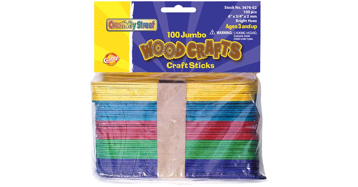 Jumbo Craft Sticks, Bright Hues Assorted, 6" x .75", 100 Pieces - CK-367602 | Dixon Ticonderoga Co - Pacon | Craft Sticks
