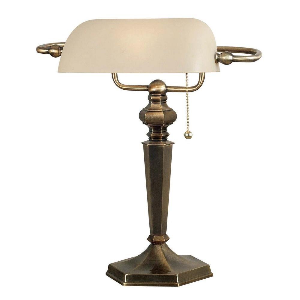 - CLASSIC DESK LIGHTING: A rich, polished golden bronze finish and a luxurious cream glass shade is only part of what makes the angular Art-Deco profile of this classic banker lamp the ultimate in-home office lighting. Place on top of your traditional large wood home office desk to illuminate your workspace