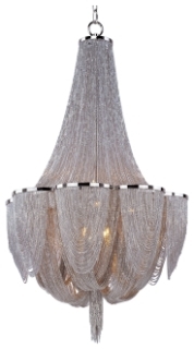 Maxim 21465NKPN Chantilly Jewelry Chain Chandelier, 10-Light Xenon 400 Total Watts, 35"H x 22"W, Polished Nickel