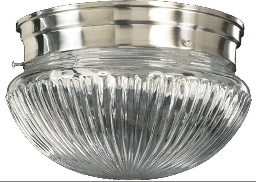 Quorum International 3012-8-65 8 Inch 2 Light Ribbed Mushroom Flush Mount In Satin Nickel With Clear Shade 3012865
