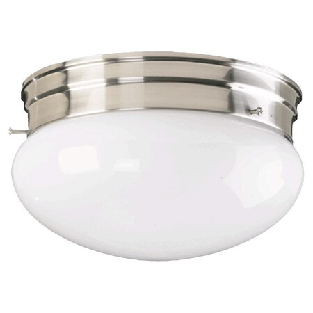 Finish:Satin Nickel, Light Bulb:(2)60w A19 Med F Incand A versatile fixture used in virtually any room, Quorum's ceiling fixtures come in a wide variety of designs. Simple ceiling fixtures are a practical way to finish a home's interior. This flush ceiling fixture houses twin 60w sockets. Colorful or uniquely patterned glass diffusers are typically hand made and, as such, will exhibit some variation in both color and pattern. Such variations should be considered normal and indicative of hand crafting rather than machine production.