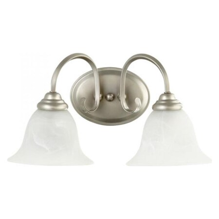 Quorum 5110-2-64 Spencer - Two Light Bath Vanity, Classic Nickel Finish with Faux Alabaster Glass