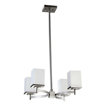 6084-4-65 Finish: Satin Nickel Features: -Chandelier.-Transitional style.-Satin opal glass shade.-UL listed for dry locations. Color/Finish: -Satin nickel finish. Specifications: -Accommodates (4) 60W medium base bulb (not included). Dimensions: -Overall dimensions: 17.5'' H x 24.25'' W. Collection: -Delta collection.