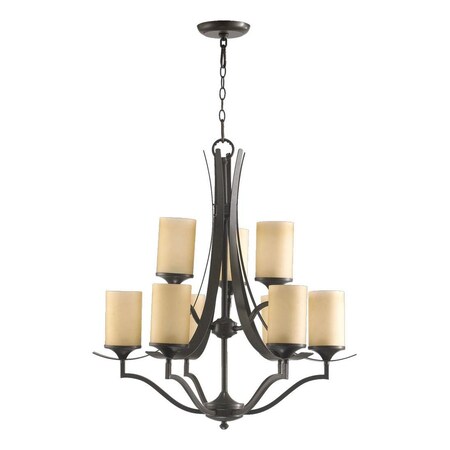 Quorum International 6096-9-86 Atwood 9 Light Chandelier In Oiled Bronze With Amber Scavo Shade 6096986