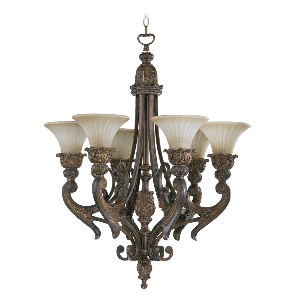6230-6-88 Features: -Six light chandelier.-Scavo glass.-Traditional style.-UL listed for dry location. Specifications: -Accommodates (6) 60W medium base bulb (not included). Dimensions: -Overall dimensions: 34'' H x 27'' W. Collection: -Madeleine collection.