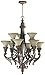 This Nine Light Up Chandelier is part of the Madeleine Collection and has a Corsican Gold Finish and Antique Amber Glass. It is Dry Rated.