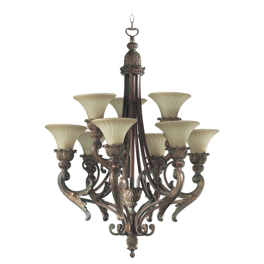 Quorum 6230-9-88 Madeleine - Nine Light 2-Tier Chandelier, Corsican Gold Finish with Antique Amber Scavo Glass