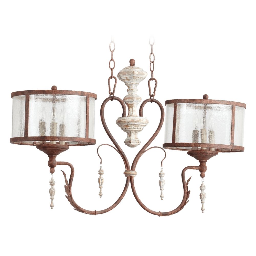 Quorum International 6552-6-56 Island Pendants with Clear Seeded Glass Shades, Manchester Gray/Rust