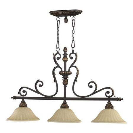 Quorum 6557-3-44 Leaf, Flower, Fruit Three Light Island Pendant from Rio Salado Collection in Bronze / Dark Finish, 44.75 inches