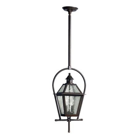 7920-2-86 Features: -Outdoor pendant.-Transitional style.-Four diffuser panel.-Clear hammered glass shade.-UL listed for damp locations. Color/Finish: -Oiled bronze finish. Specifications: -Accommodates (2) 60W candelabra bulb (not included). Dimensions: -Overall dimensions: 21.5'' H x 11'' W. Collection: -French Quarter collection.