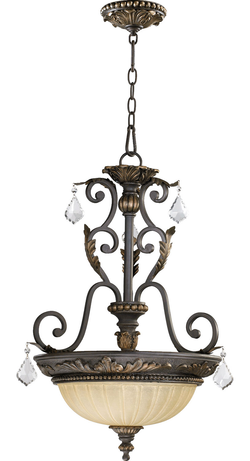 Quorum 8057-3-44 Rio Salado Pendant, 3-Light, 225 Total Watts, Toasted Sienna With Mystic Silver