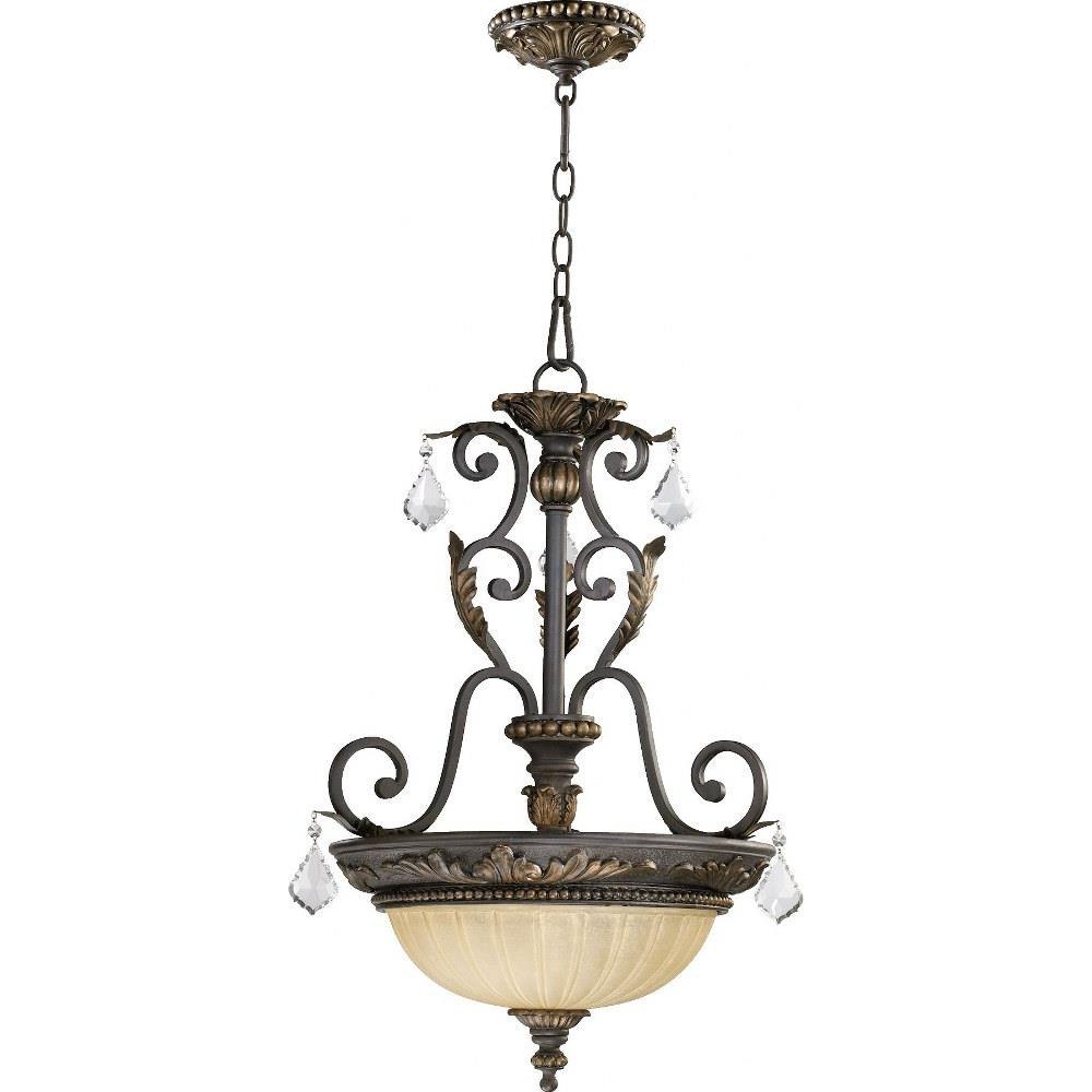 Quorum International 8057-3-44 Rio Salado Traditional / Classic Three Light Up Lighting Pendant in Toasted Sienna With Mystic Silver