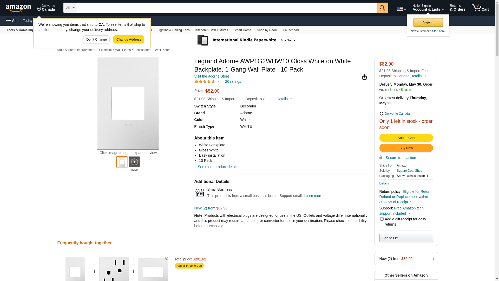 | lightingandlocks.com | AWP1G2WHW10 | 1 | 1 | 1 @ $8.54 | |